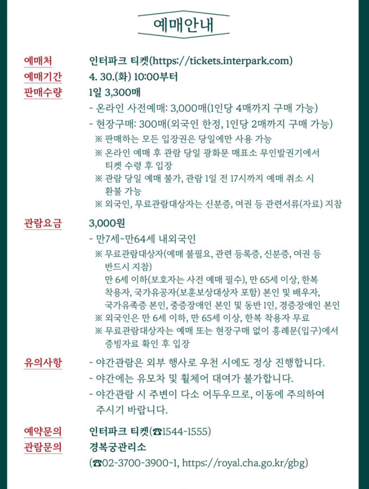 무료입장자 외엔 사전 예약을 통해서만 관람가능하니 경복궁의 낮과 밤을 느껴보고 계신 분은 이번 포스팅 주목해 주세요.