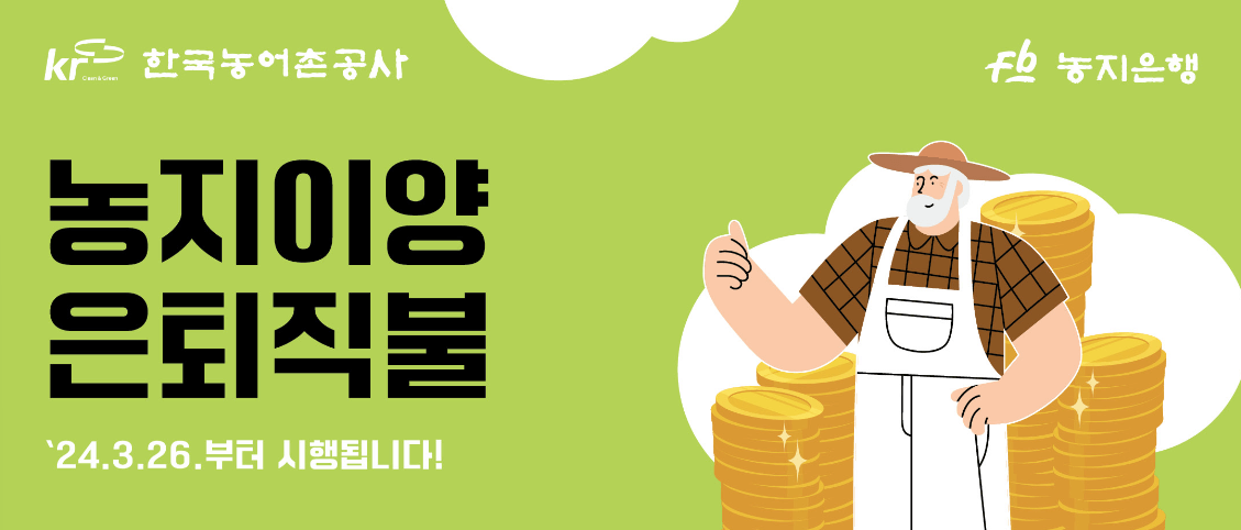 ✔️ 고령 농업인의 영농 은퇴 유도와 은퇴 이후의 생활 안정을 돕기 위해 소유한 농지를 매도 이양하는 경우 매월 일정 금액의 직불금을 지원하는 제도