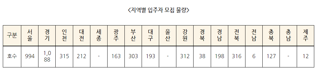 특히 이번 모집공고는 서울 994호 및 경기, 인천을 비롯한 수도권 지역에 총 2,397호 규모의 입주자 모집으로 수도권 임대차 시장이 안정화될 것으로 기대되고 있습니다.