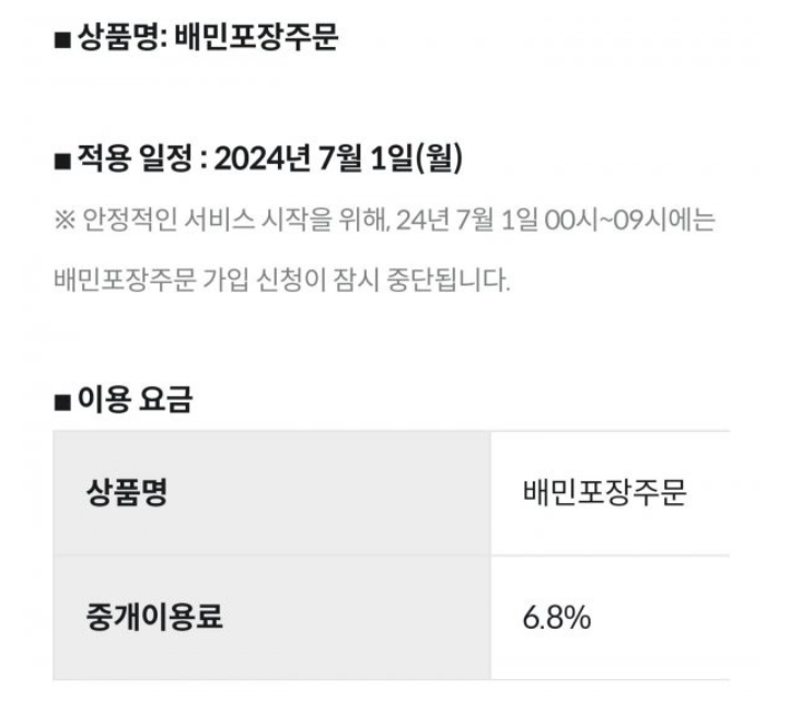 | 배달의 민족 | 6.8% | 24.7월부터 신규회원 적용 (기존회원은 25.4월부터) |
