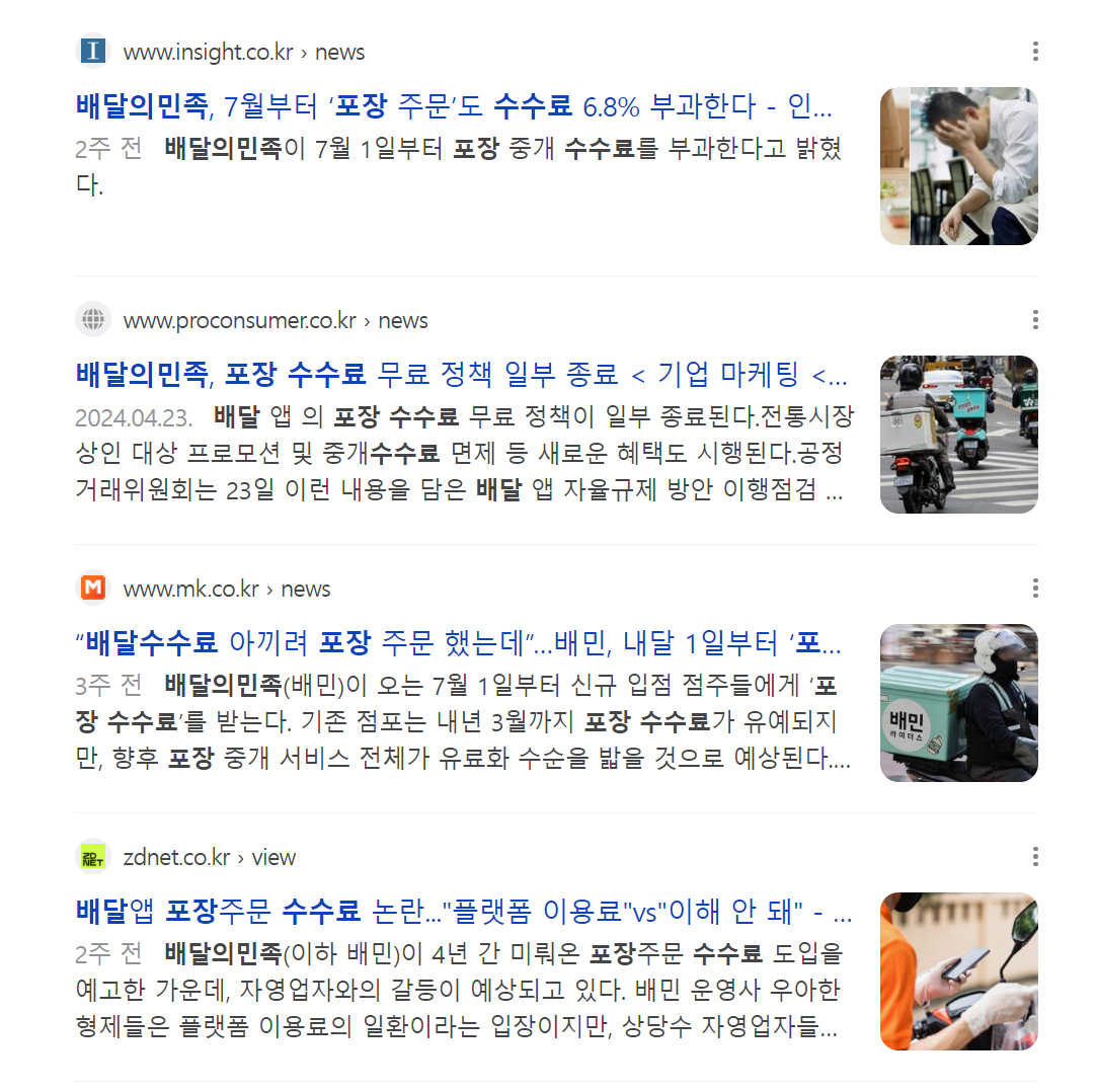 결국 포장 수수료는 직간접적으로 외식비 물가 인상(인플레이션)을 부추길 가능성이 있다는 뜻입니다.
