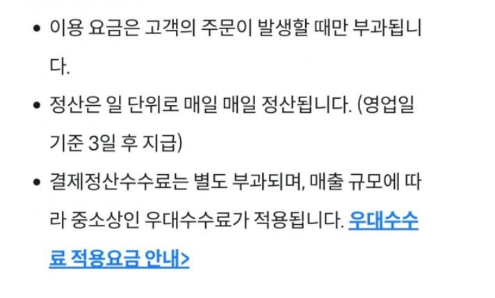 | 쿠팡이츠 | 6.8% | 25.3월까지 무료 (추후 방향 현재 미정) |