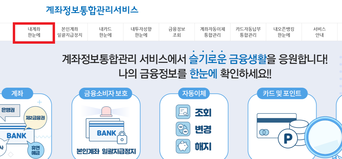 금융결제원에서 운영하는 계좌정보통합관리 서비스 덕분에 카드발급 및 계좌 확인을 한 곳에서 확인할 수 있고, 무엇보다 안전하게 활용할 수 있다는 점에서 간편하고 좋은 서비스입니다. 휴면계좌로 내 숨은 돈 찾아보시고, 카드 관리도 철저히 하셔서 알뜰한 생활 하시기 바랍니다.