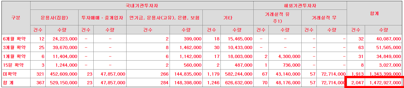 상장일에 풀리는 물량이 적을수록 수익률이 크게 오를 가능성이 높기 때문에 좋은 편입니다.