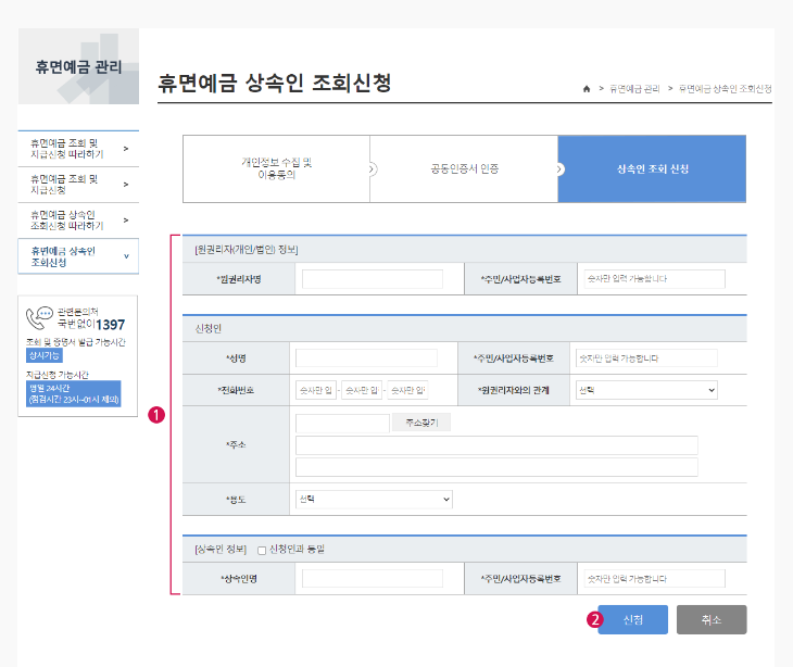 <STEP2> 상속인 조회 신청정보 입력 후 신청내역을 확인합니다.