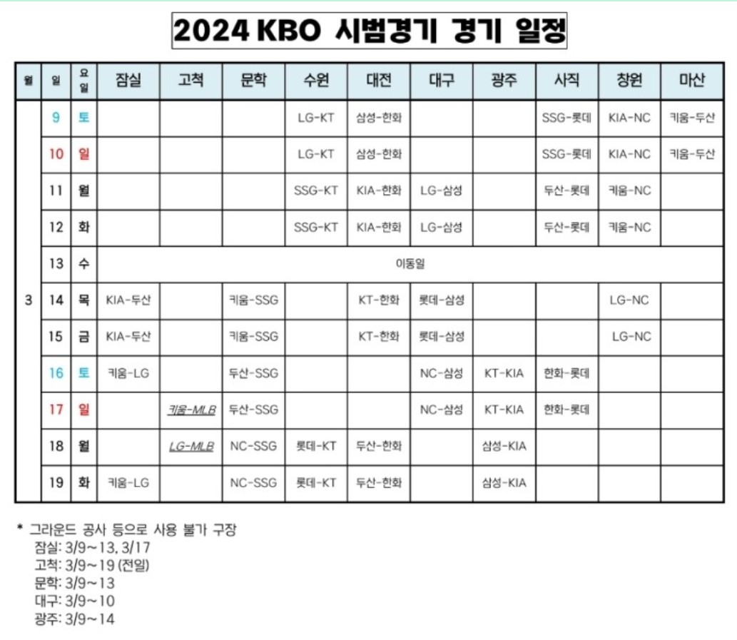 024 KBO 시범경기는 지난 3월 9일부터 시작되어 약 열흘간 진행 중에 있습니다. 비록 시범경기는 시즌 성적과는 관계는 없지만 야구 팬들이라면 현장에서의 열기를 느끼고 싶으실 것이 분명합니다.