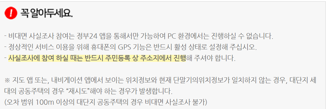 가장 중요한 점은 GPS 위치를 기준으로 하기 때문에 주민등록 상 주소지에서 진행해야 합니다.