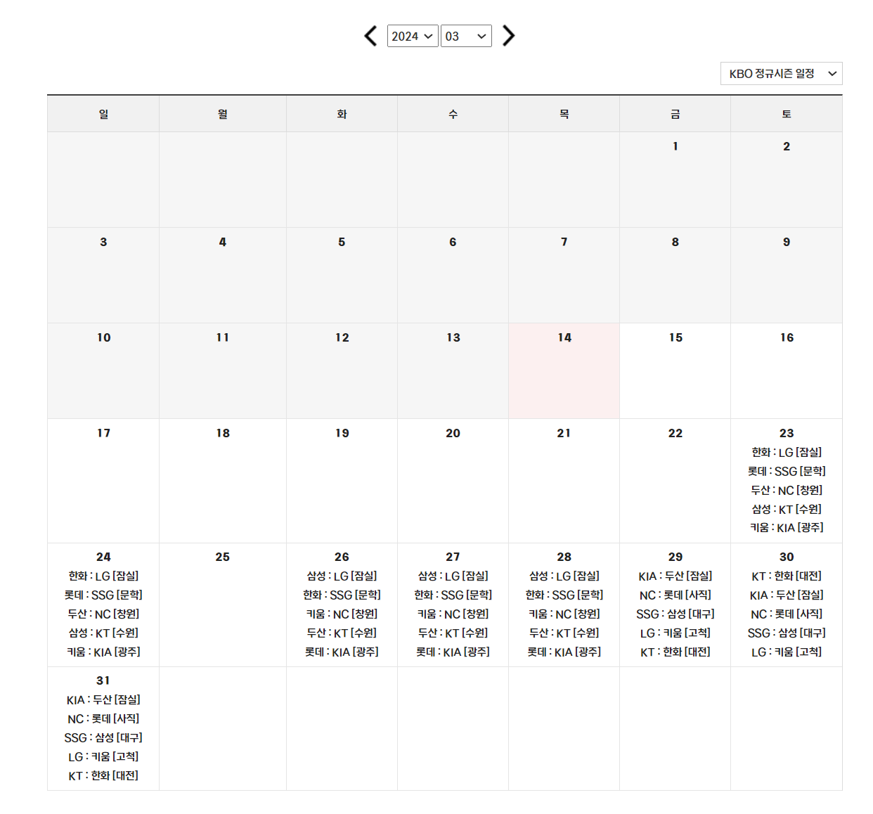 | 2024 야구 시범경기 예매 및 일정 (0) | 2024.03.14 |